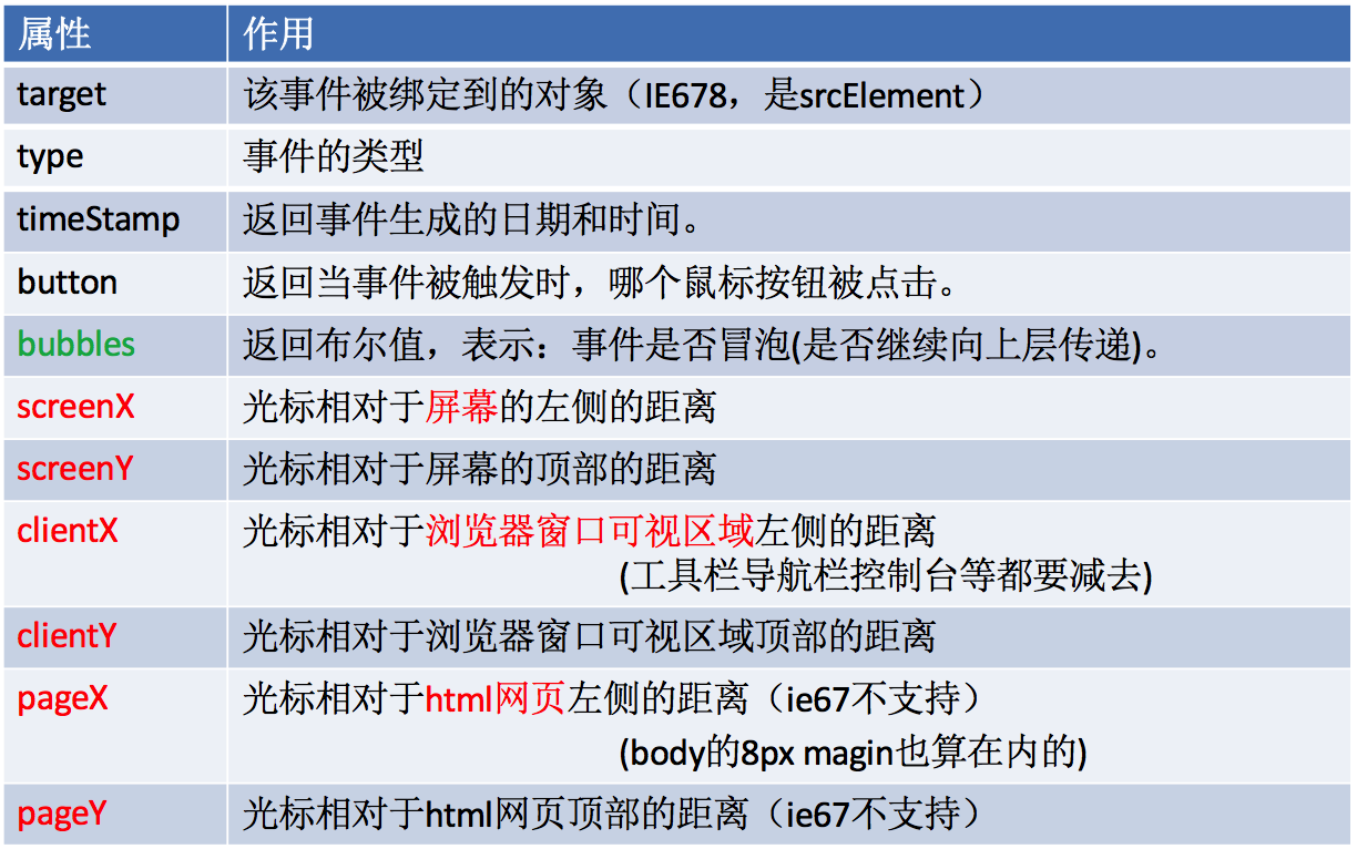 事件event对象(事件被触动时,鼠标和键盘的一些状态,都是通过event的属性)
